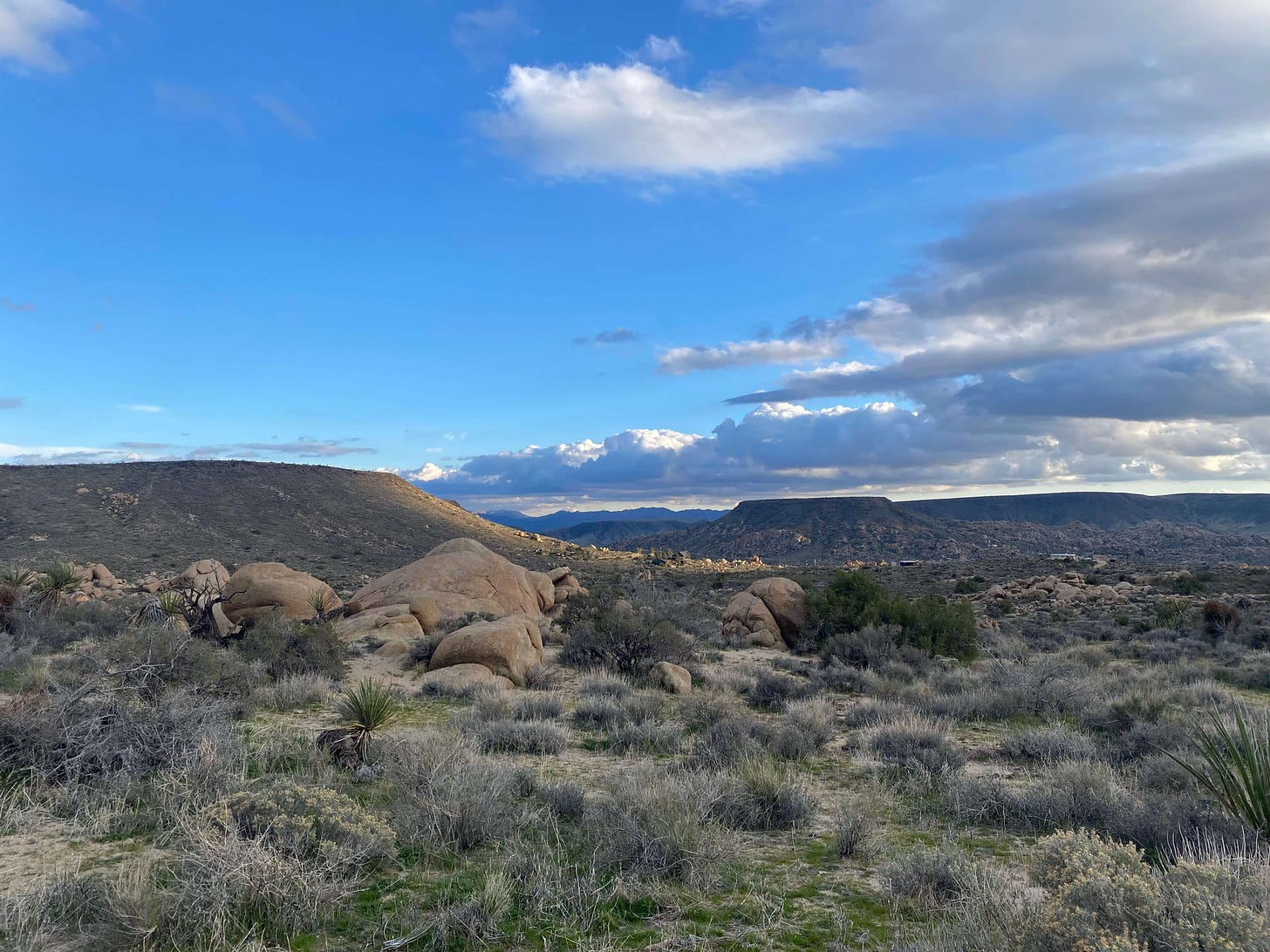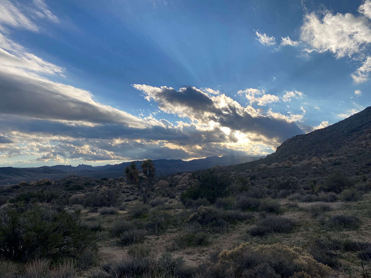 But there have been small acts of generosity. A friend who has been a trusted caretaker of my house and cats for years, but who I’d never met in person picked me up from the airport after my flight home was diverted from Palm Springs to Ontario. We reflected on the year ahead as we drove back to the desert under rain-heavy skies, talking about taking the time to create space in our lives and not rushing to fill it, but rather to sit with it to see what space that expansion can bring.